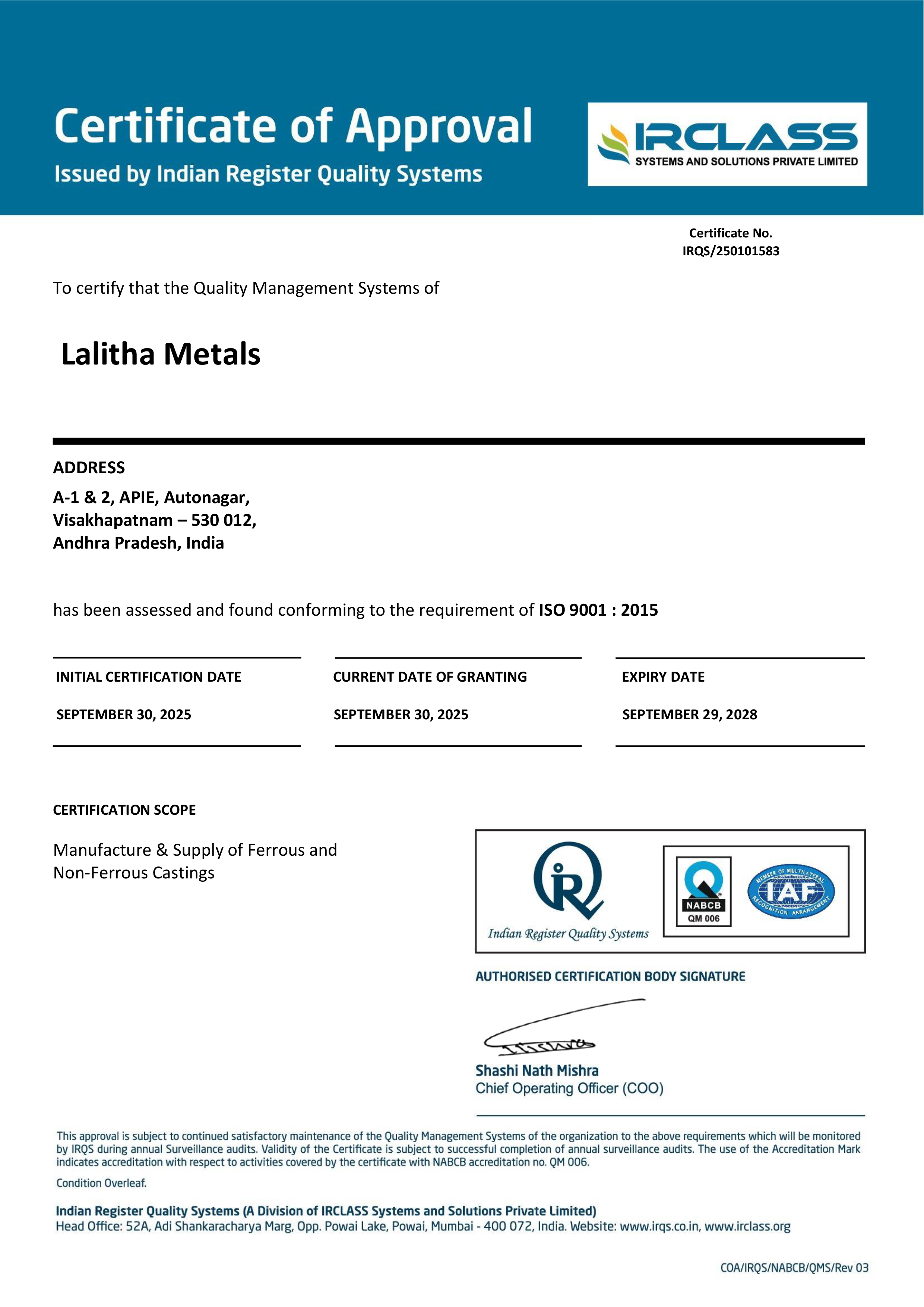 This certification reflects our unwavering commitment to delivering high-quality, durable,